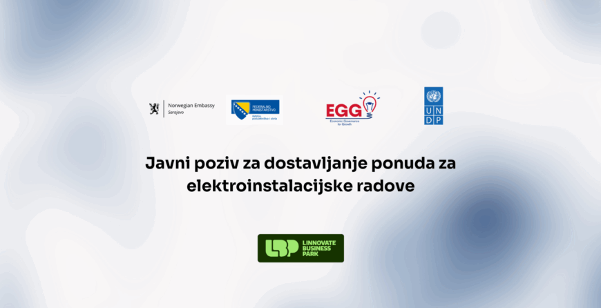 Zaklada Linnovate objavljuje javni poziv za dostavljanje ponuda za elektroinstalacijske radove postavljanja audiovizualne opreme s pripadajućim repromaterijalom u okviru Projekta ”EU Fondovi & Digitalni marketing” kojeg Zaklada Linnovate implementira u sklopu projekta “Boljom upravom do bržeg ekonomskog rasta” (EGG2) kojeg uz podršku Vlade Kraljevine Norveške provodi Razvojni program Ujedinjenih nacija (UNDP) u Bosni i Hercegovini i Federalno ministarstvo razvoja, poduzetništva i obrta (FMRPO).